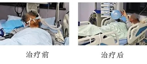 经过中西医综合治疗,5月2日患者病情好转,复查胸部CT较前渗出减少,5月3日经脱机试验评估后成功撤除呼吸机并拔出气管插管。鼓励患者呼吸功能锻炼, 5月6日复查胸部CT渗出基本吸收,双肺肺不张较前明显减轻。5月7日患者病情平稳,转回专科继续治疗。
