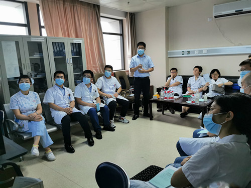 会议由田旭东主任主持。首先申办方通过项目背景、试验设计及试验方案等内容介绍了临床试验情况并进行了GCP的培训。详细解说临床试验的纳入/排除标准、合并用药、有效评价指标及AE/SAE的处理与报告。随后研究团队就试验中纳排标准的掌握,如何提高受试者依从性,提高受试者入组稳定性等内容进行了讨论,并就研究者关注及临床试验中常见问题确定实施意见。最后田旭东主任对该项目进行总结并部署工作,提出可建立受试者绿色通道提高受试者就医满意度,保证该临床试验质量。同时机构办韩艳主任强调,随着国家药监局对临床试验质量监管的不断提高和2020版GCP的实施,研究团队务必保证试验过程规范,结果真实、可靠和可追溯。