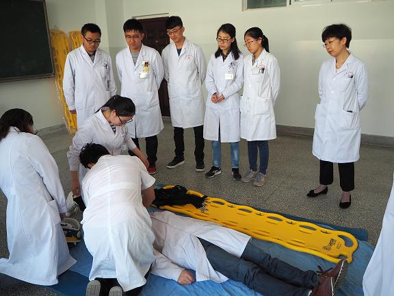 临床教学部于2018年4月2日-5月21日组织我院2015年第二期、2016年及2016级研究生中医住院医师规范化培训152名学员进行了脊椎搬运实践技能训练。
