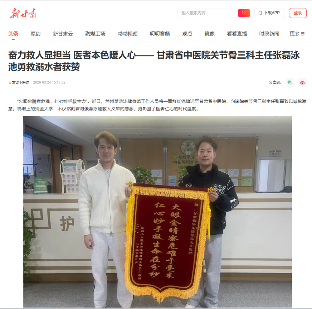 奋力救人显担当 医者本色暖人心—— 甘肃省中医院关节骨三科主任张磊泳池勇救溺水者获赞