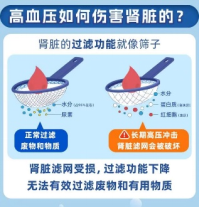肾小球是过滤血液、形成原尿的关键部位,它的毛细血管壁很脆弱。长期高压会使肾小球内压力升高,导致毛细血管内皮细胞受损、基底膜增厚。血液中的蛋白质就会漏到尿液中,形成蛋白尿,这是肾脏受损的重要指标。血压控制不佳会导致更多的肾小球受损、纤维化、硬化,肾脏过滤功能下降使体内废物无法排出,造成肾功能不全。
