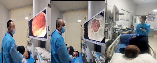 培训班中间,田旭东主任、柳直主任开展了义诊活动,武正权副主任、孙平、李彦龙副主任医师开展了内镜演示、现场带教、疑难病人查房等工作。此次义诊活动持续6小时,共接诊患者80 余人次,现场带教胃肠镜检查和治疗24例。