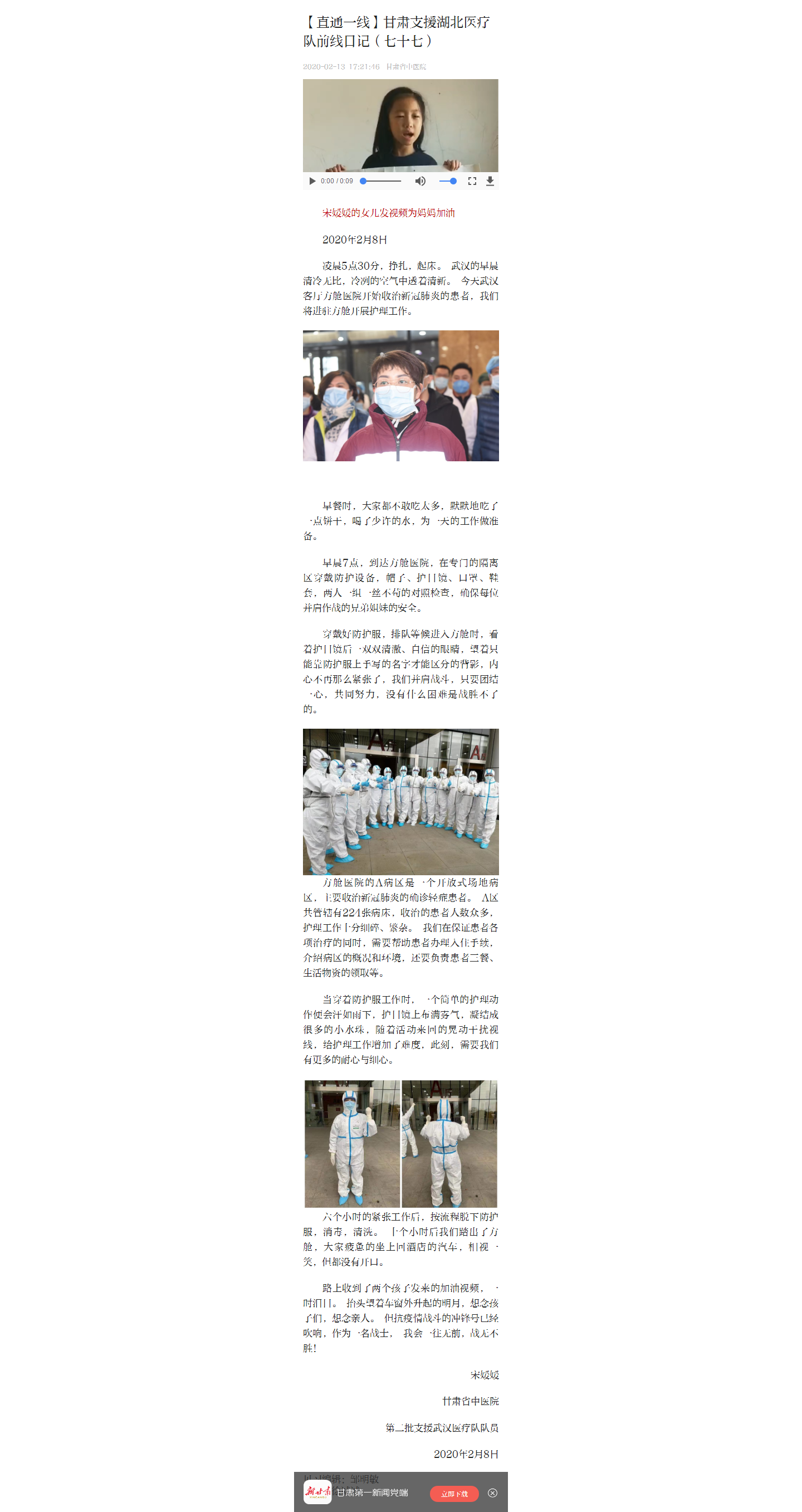 新甘肃-甘肃支援湖北医疗队前线日记(七十七)-宋媛媛