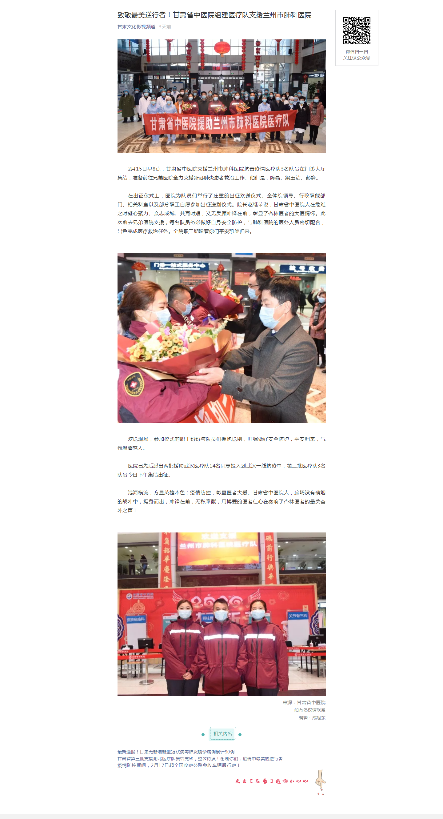 文化影视:致敬最美逆行者!甘肃省中医院组建医疗队支援兰州市肺科医院