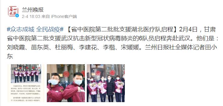 兰州晚报微博:第二批支援湖北医疗队启程