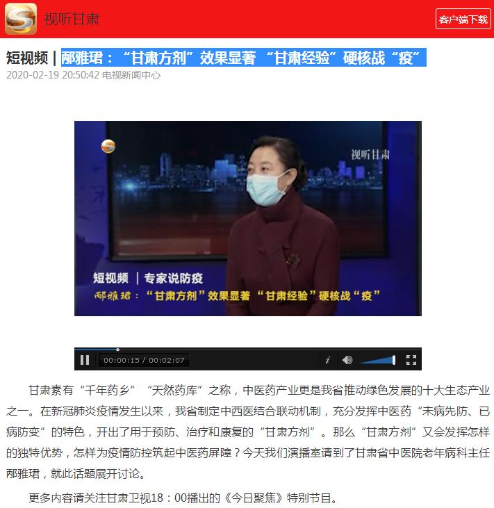 甘肃卫视今日聚焦:邴雅珺:“甘肃方剂”效果显著 “甘肃经验”硬核战“疫”