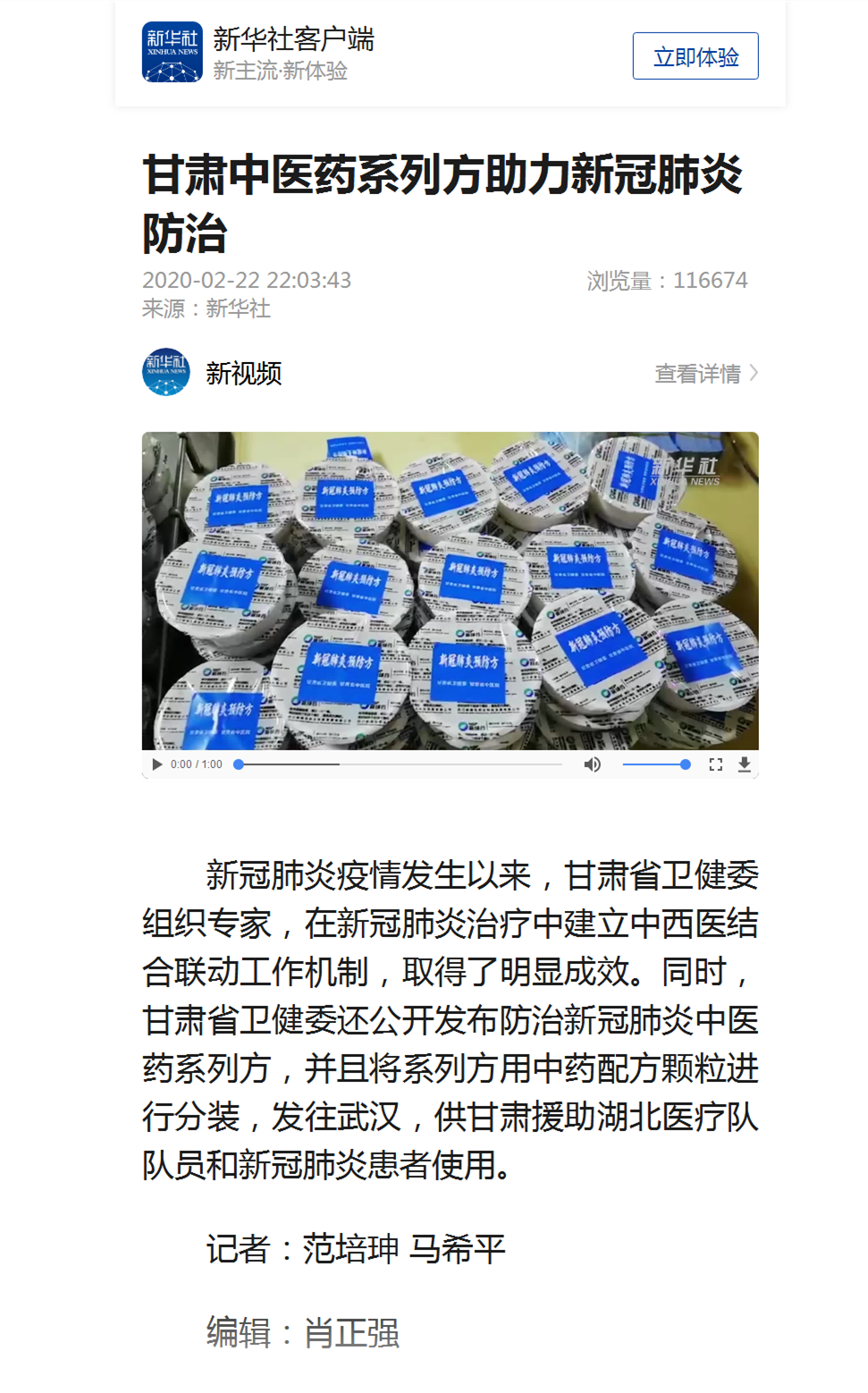 新华网:甘肃中医药系列方助力新冠肺炎防治