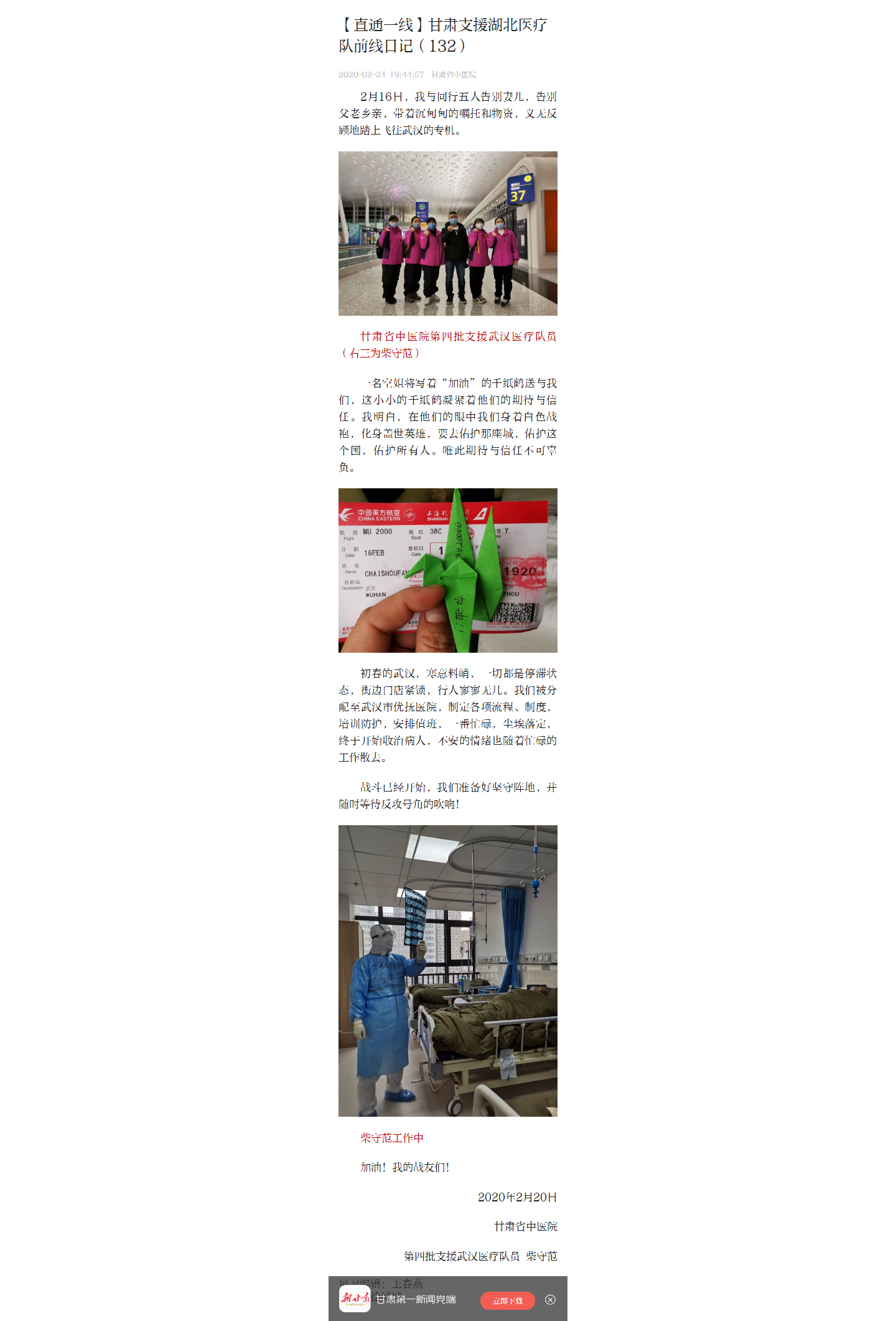 新甘肃:甘肃支援湖北医疗队前线日记(132)柴守范