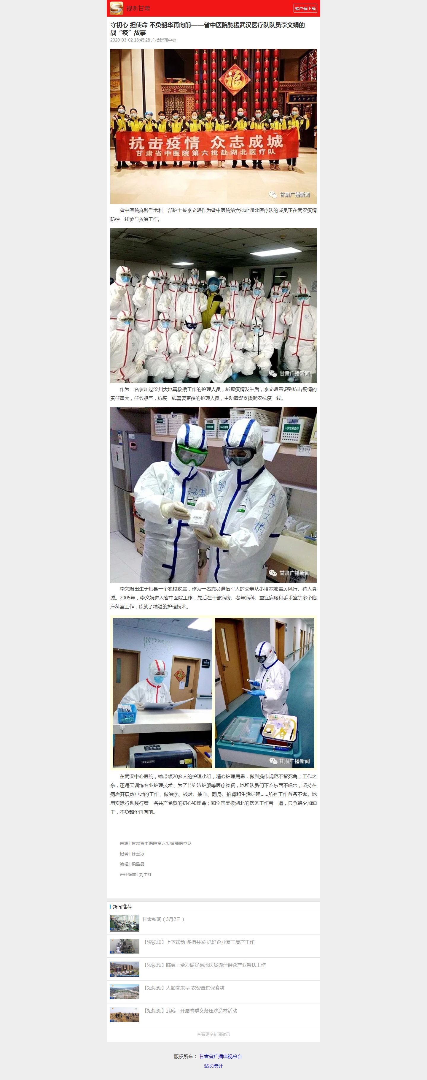 广播新闻中心:守初心 担使命 不负韶华再向前——省中医院驰援武汉医疗队队员李文娟的战“疫”故事